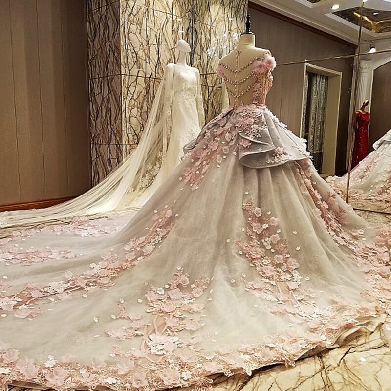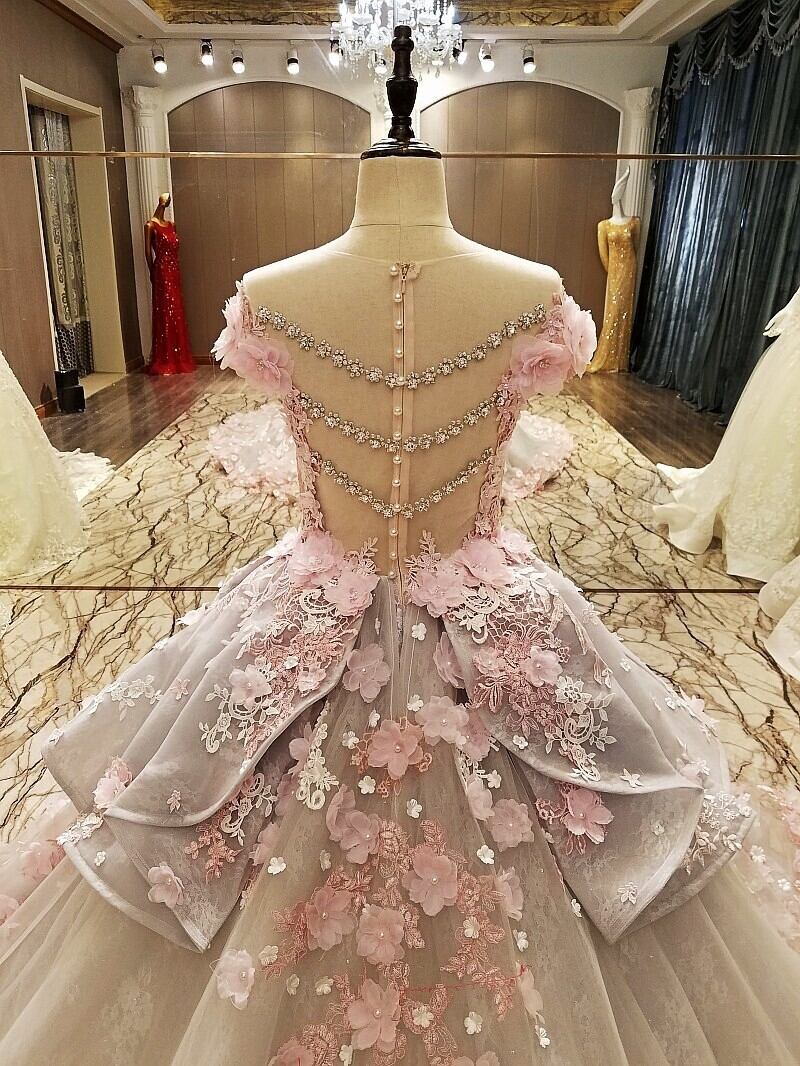 送料無料 ロマンチックウェディングドレス ピンクレース花柄ドレス 春の花を身につける すごく幸せな雰囲気ドレス | SoulmateWeddingDress