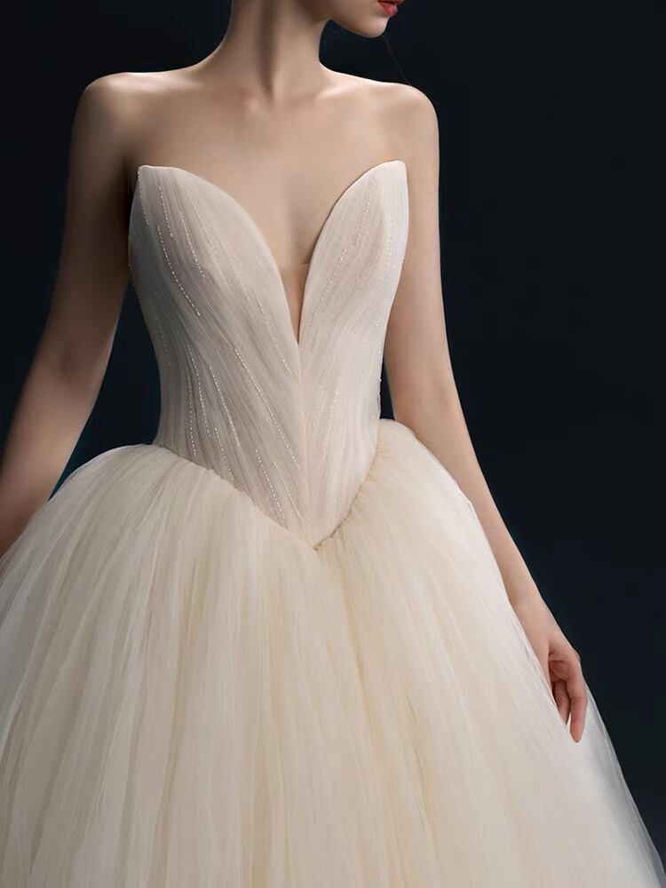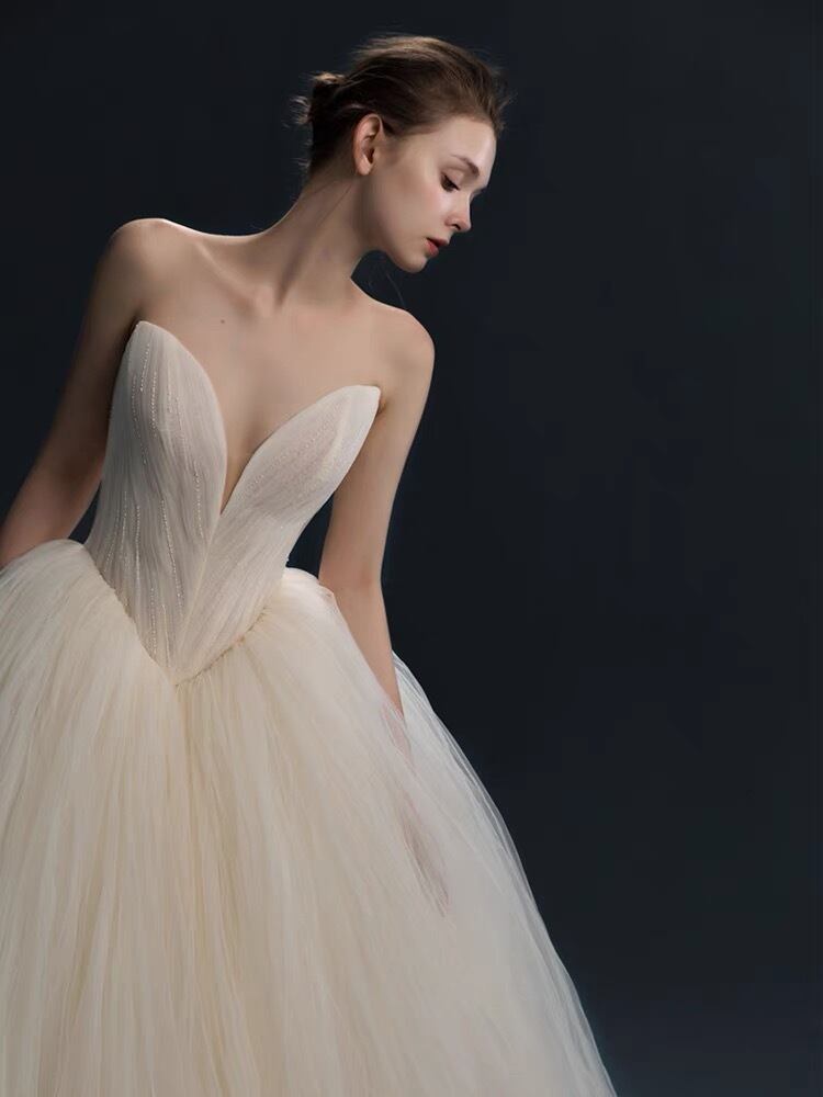 高級なウェディングドレスで、あなたの特別な日を彩ります。美しさを引き立てる薄い纱の素材を使用し、上品さと華やかさを兼ね備えた一着です。 このウェディングドレスは、丁寧に選ばれた素材と職人の技術が生み出したもので、結婚式のシーンでの存在感は抜群です。シンプルなデザインでありながらも、背中のチュール生地や裾の繊細なレースが、女性らしさを際立たせます。 あなたの幸せな瞬間を輝かせるために、サイズやデザインにもこだわりました。豊かなカラーバリエーションや豊富なサイズ展開をご用意しています。憧れのウェディングドレスを手軽に手に入れることができます。 一生に一度の特別な日にふさわしい、高級で美しいウェディングドレス。あなたの夢のような花嫁姿を叶える素敵な一着です。大切な人々の前で輝くために、ぜひご検討ください。