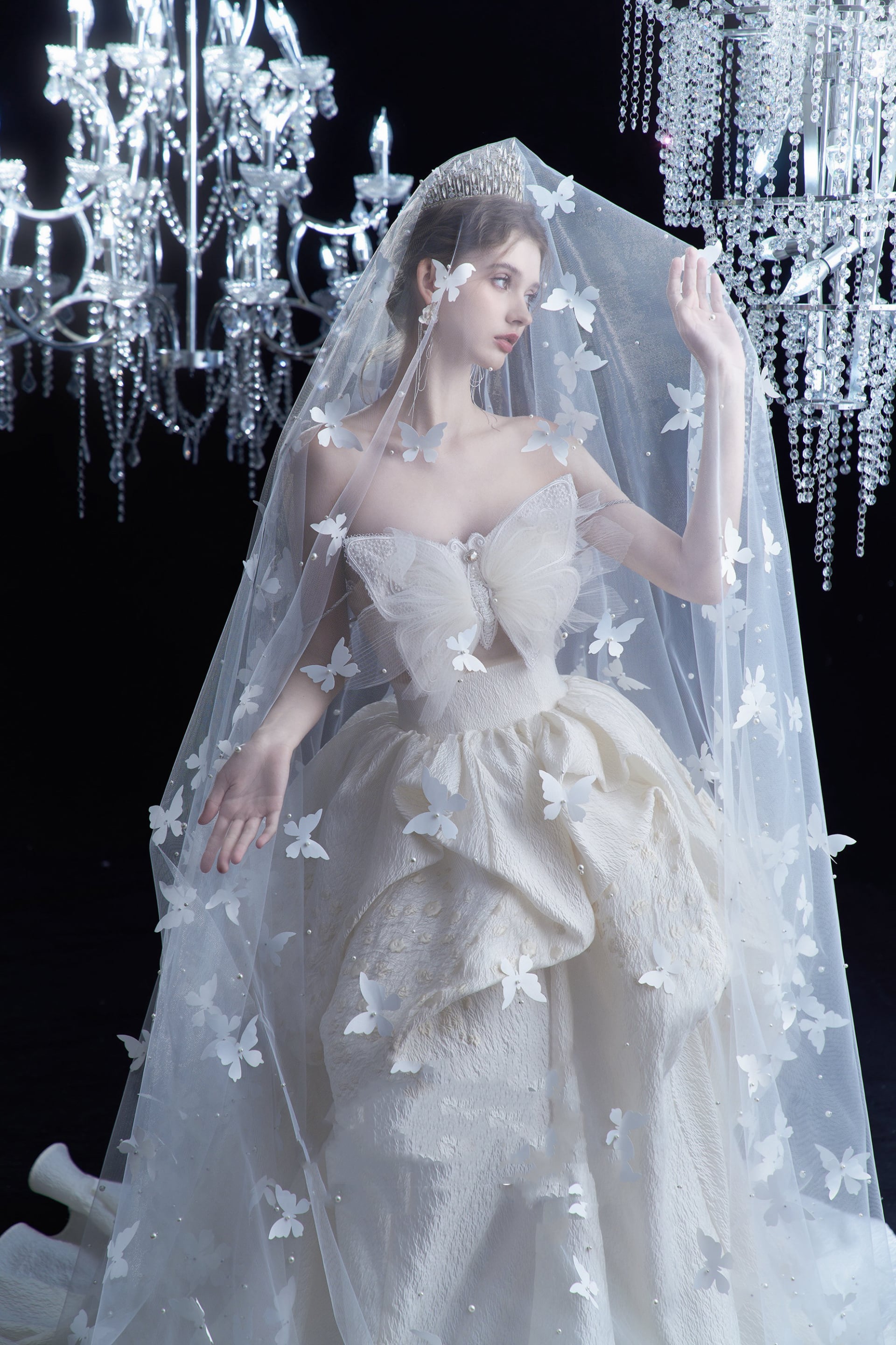 可愛い蝶々ウェディングドレス ロマンチックロングドレス 華やかなロングドレス 結婚式