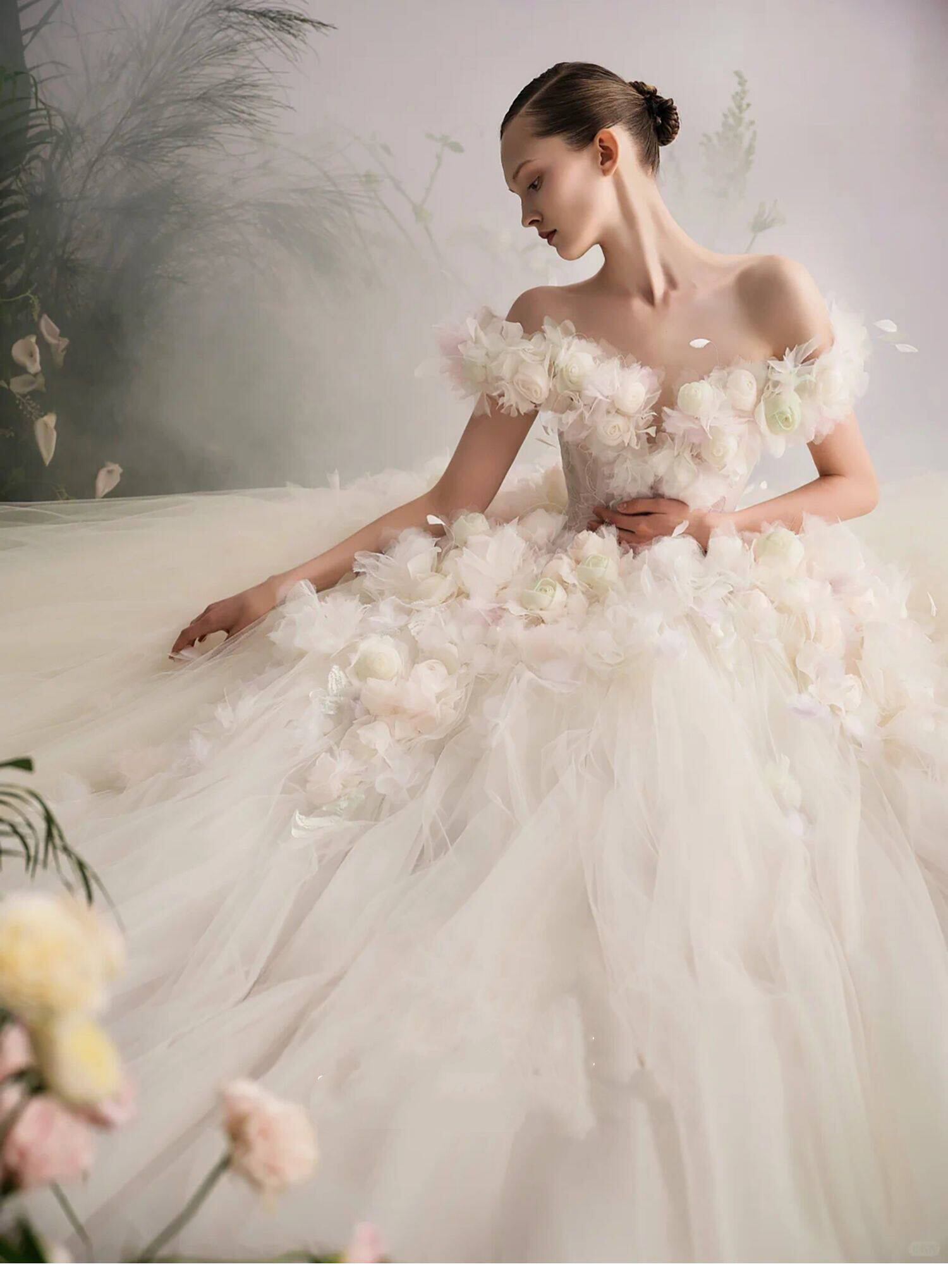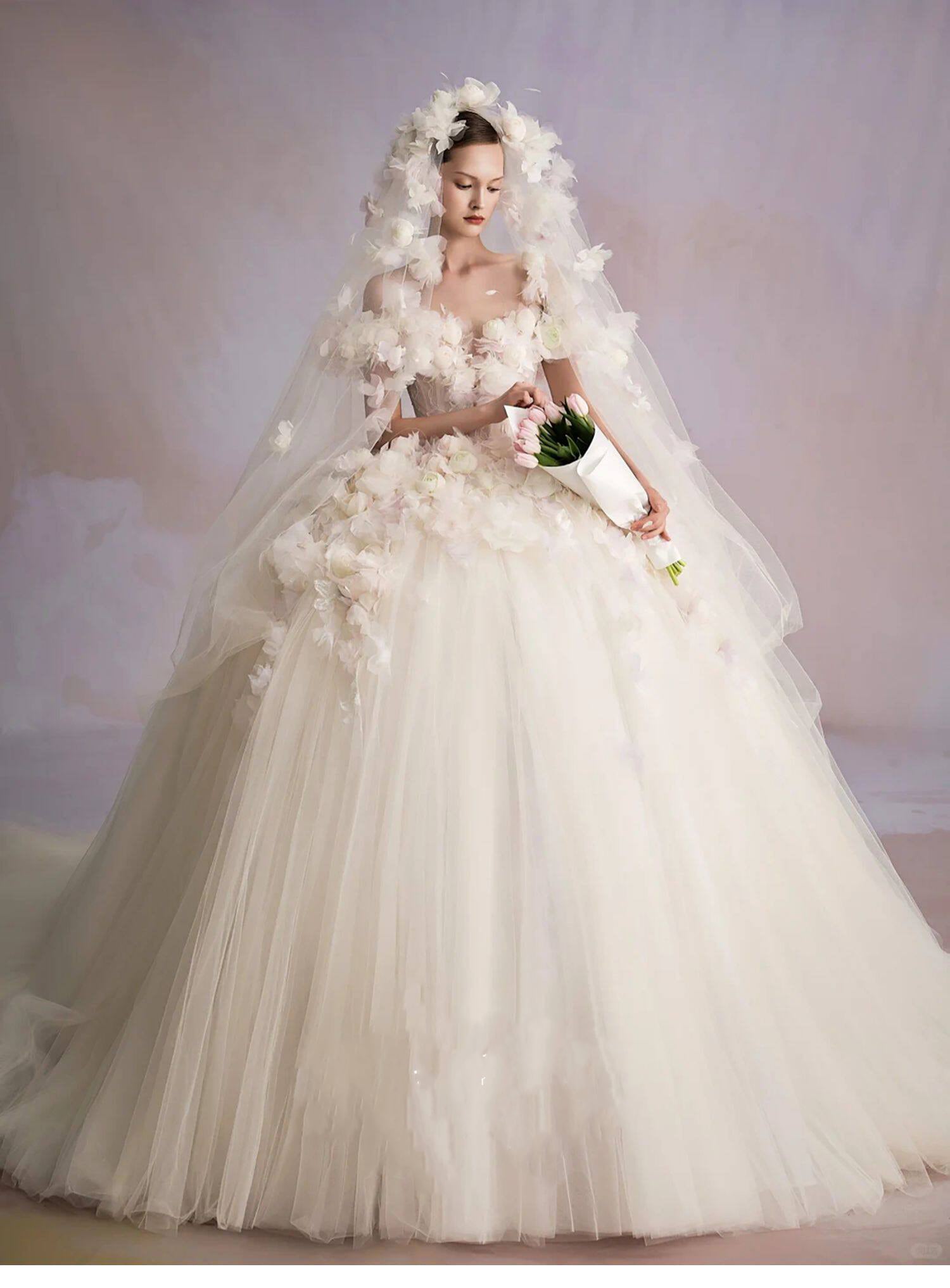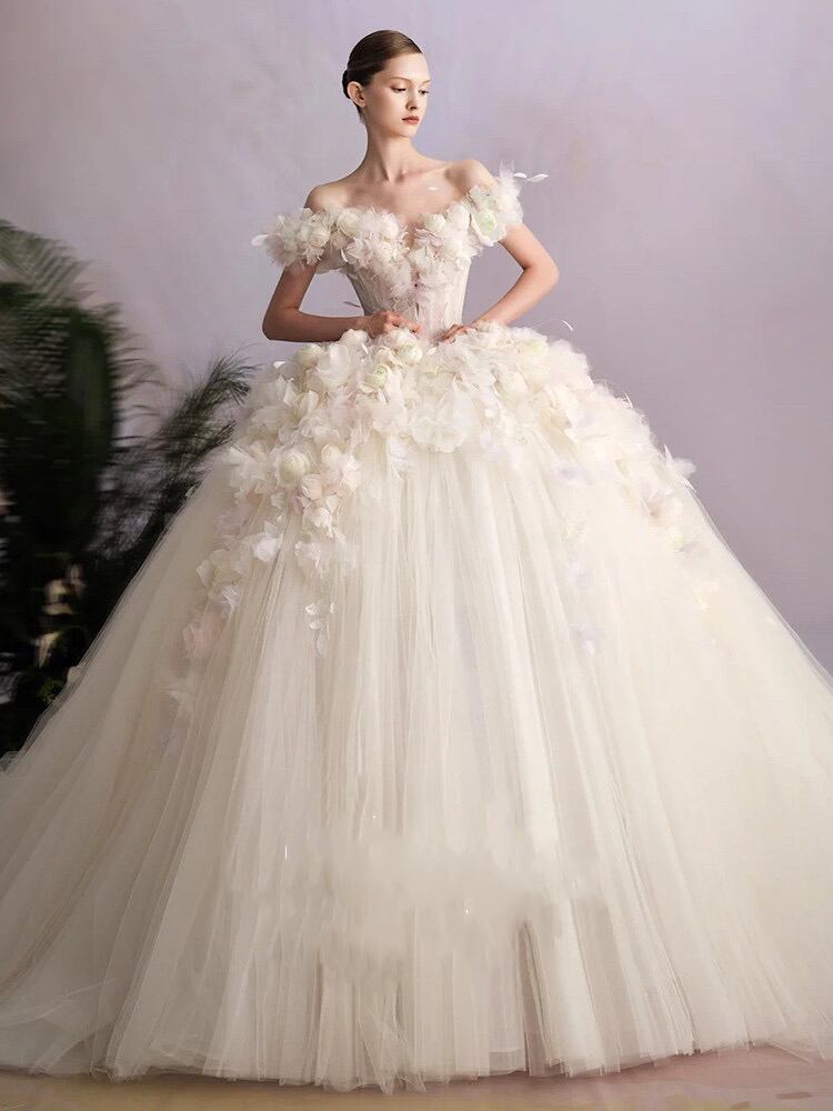 ウェディングドレス、ロングドレス、花嫁、新しいテール、メイン、高級質感、花、プリンセス、外出用、