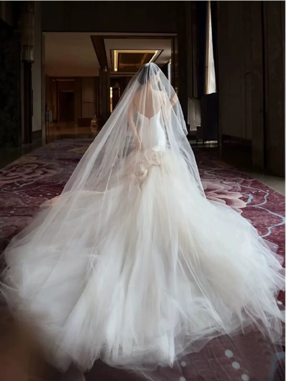 ロマンチックな仙系 セクシーな胸を拭く 花の魚の尾。ポンポンスカート姫 花嫁の尾を引くウェディングドレス ドレス